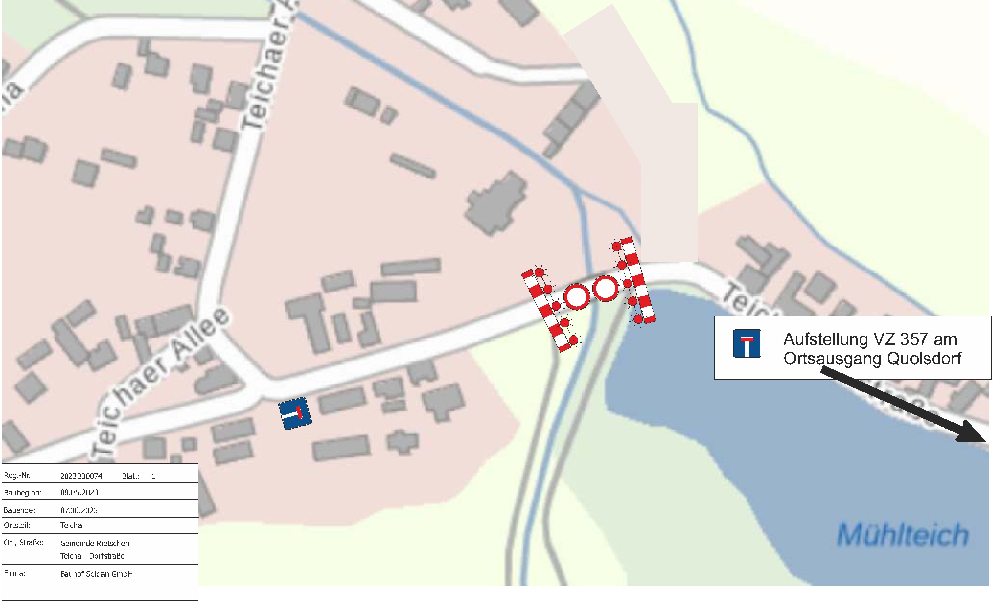 Im Zeitraum vom 08.05.2023 bis 07.06.2023 erfolgt eine Sperrung der Teicha–Dorfstraße ab Höhe Hausnummer 17 in Richtung Quolsdorf. Grund für diese Maßnahme sind Bauarbeiten an der Brücke über den Mühlgraben. Eine Umleitung erfolgt über Quolsdorf. Der Durchgang für Fußgänger wird gewährleistet.