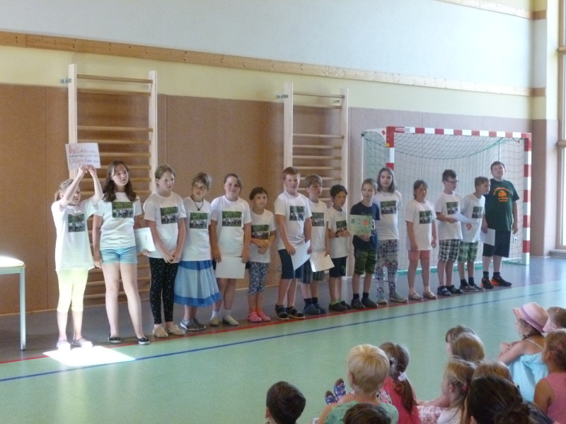 Wie in jedem Jahr kamen die Schüler und Schülerinnen unserer Grundschule in Daubitz am vorletzten Schultag vor den Sommerferien zum "Willkommen & Abschied" zusammen. Die beiden vierten Klassen unterhielten die anwesenden Mitschüler, Lehrer und Gäste mit Gesang und Sketch. Anschließend wurden die 32 Viertklässler an die Oberschulen und Gymnasien der Region verabschiedet. 27 Schulanfänger aus den Gemeinden Rietschen und Hähnichen wurden durch die Schulleiterin Frau Brehmer mit einer kleinen Zuckertüte willkommen geheißen. Sie soll die Wartezeit bis zum 1. Schultag am 07.08.2017 versüßen. Abschließend wurde die Lehrerin Frau Rust von allen Schülern, Schülerinnen und Kolleginnen gesanglich in den wohlverdienten Ruhestand verabschiedet.