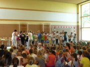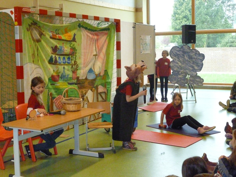Anlässlich unserer Projektwoche organisierten die Elternvertreter mit Eltern der Klassen und anderen Helfern ein Schulfest für unsere Vorschüler und Schulkinder. Es gab eine sehr große Vielfalt an Stationen und auch das Essen und Trinken kamen nicht zu kurz. Nach der Eröffnung führten Eltern die Geschichte vom Teufel mit den Pfannkuchen auf. Auch unsere Programmkinder unter der Leitung von Frau Krenz zeigten wieder ihr schauspielerisches Können. Frau Rothe sorgte nach der ruhigeren Phase mit einer Popgymnastik für viel Stimmung. Die große Besucherzahl ließ das kühle Frühlingswetter verdrängen. Wir danken allen, die unser Schulfest so toll mit vorbereitet und durchgeführt haben. Ein großes Dankeschön gilt allen Sponsoren, die uns materiell und finanziell dabei unterstützten.