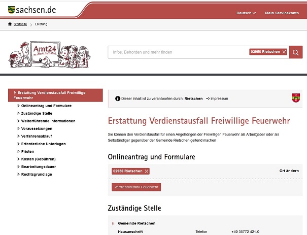 Über das Portal des Freistaates Sachsen „Amt24“ können Sie ab sofort diesen Antrag online ausfüllen und per Mausklick an die Gemeinde Rietschen senden.