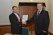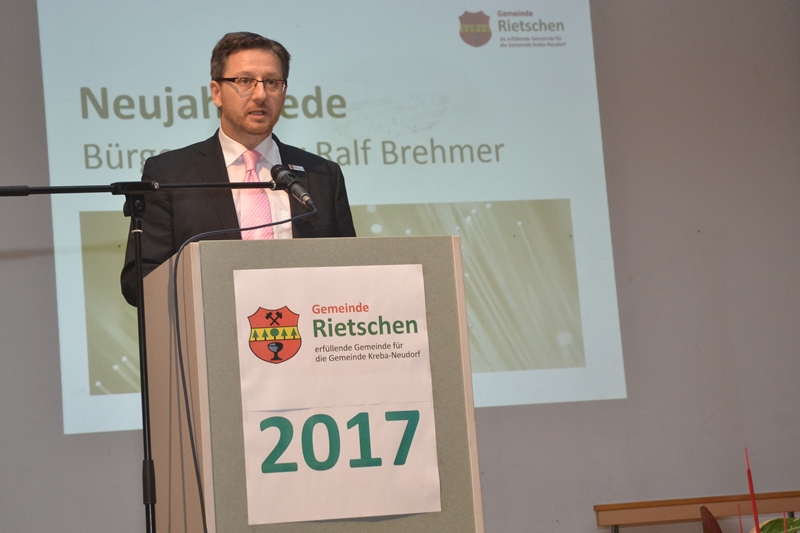 Im Rahmen des Neujahrsempfanges unterschreibt Bürgermeister Ralf Brehmer und Herr Thiem von der Telekom den Vertrag zur Breitbanderschließung der Gemeinde Rietschen. In seiner Rede bedankt sich der Bürgermeister bei den vielen Ehrenamtlichen, die das Leben in der Gemeinde so aktiv gestalten.