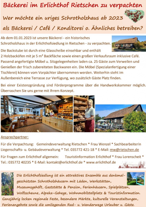Im Herbst 1990 schlug die Geburtsstunde der Erlichthofsiedlung. Mit der Entscheidung der damaligen Kreisverwaltung, die Schrotholzhäuser aus dem Tagebauvorfeld Reichwalde nach Rietschen umzusetzen, begann der Aufbau der Siedlung. Es entstand ein Heidedorf mit historischer Bausubstanz. Traditionelles Handwerk, Gastronomie, Ferienwohnungen, Ausstellungen und ein Museum besiedelten im Laufe der Jahre das errichtete Heidedorf. Die Erlichthofsiedlung entwickelte sich zu einem wichtigen touristischen Anziehungspunkt in der Gemeinde Rietschen. Auf dem Gelände finden mehrmals im Jahr Feste und Märkte der besonderen Art statt, wie Töpfermarkt, Frühlings- u. Herbstgartenmarkt, Natur- u. Fischerfest und Wichtelfest.