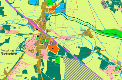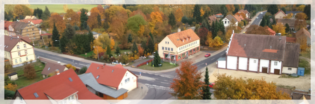 • Blick vom Kirchturm auf die Ortsmitte Rietschen