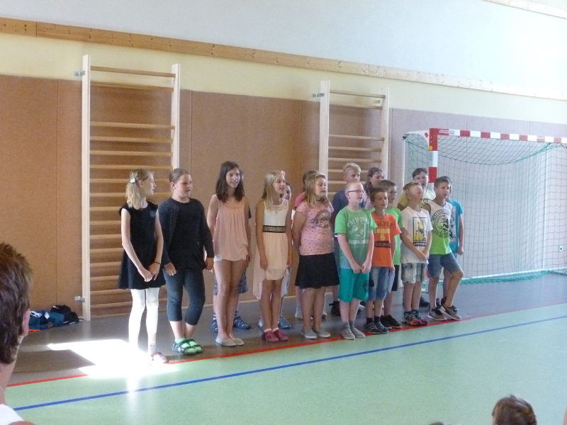 Wie in jedem Jahr kamen die Schüler und Schülerinnen unserer Grundschule in Daubitz am vorletzten Schultag vor den Sommerferien zum "Willkommen & Abschied" zusammen. Die beiden vierten Klassen unterhielten die anwesenden Mitschüler, Lehrer und Gäste mit Gesang und Sketch. Anschließend wurden die 32 Viertklässler an die Oberschulen und Gymnasien der Region verabschiedet. 27 Schulanfänger aus den Gemeinden Rietschen und Hähnichen wurden durch die Schulleiterin Frau Brehmer mit einer kleinen Zuckertüte willkommen geheißen. Sie soll die Wartezeit bis zum 1. Schultag am 07.08.2017 versüßen. Abschließend wurde die Lehrerin Frau Rust von allen Schülern, Schülerinnen und Kolleginnen gesanglich in den wohlverdienten Ruhestand verabschiedet.